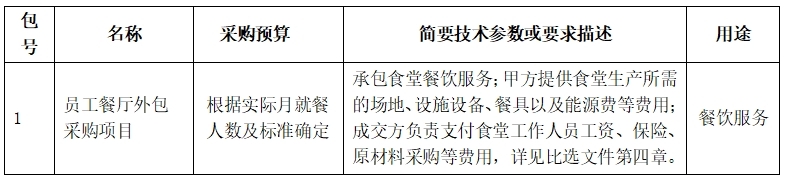 一、项目名称:员工餐厅外包采购项目