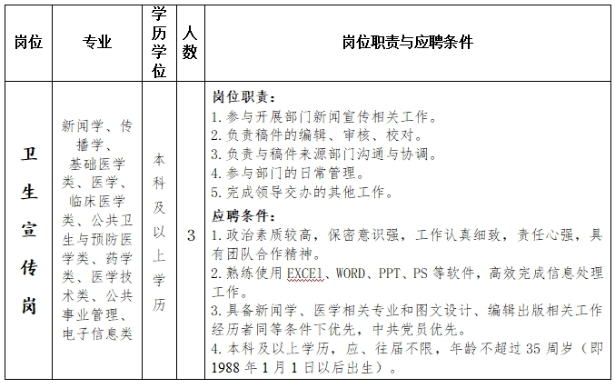 中国卫生科教音像出版社是国家卫生健康委员会主管,中国健康教育中心主办的具有独立法人资格的全民所有制企业。结合实际工作需要,本次公开招聘工作人员3名。现将有关事项公告如下: