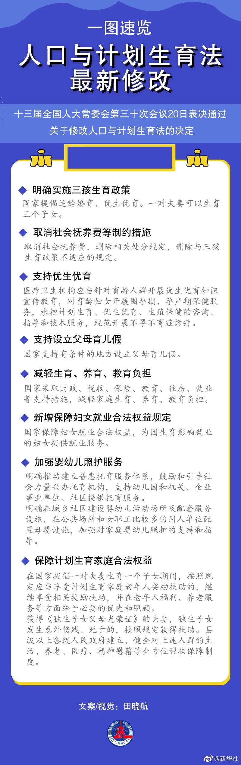 人口计生法完成修改 法律保障实施三孩生育政策及配套支持措施