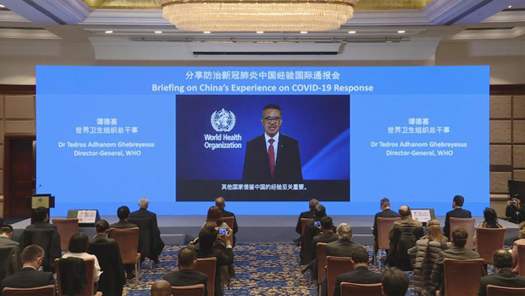 国家卫生健康委与世界卫生组织以多地视频连线形式共同举办分享防治新冠肺炎中国经验国际通报会,世界卫生组织西太区与有关国