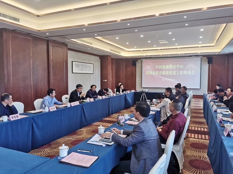 2021年10月18日,中国健康教育中心党委书记、主任李长宁参加金寨县健康促进与健康教育工作座谈会