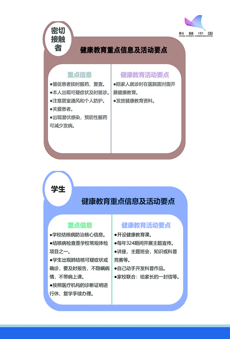 密切接触者和学生结核病防治健康教育重点信息及活动要点