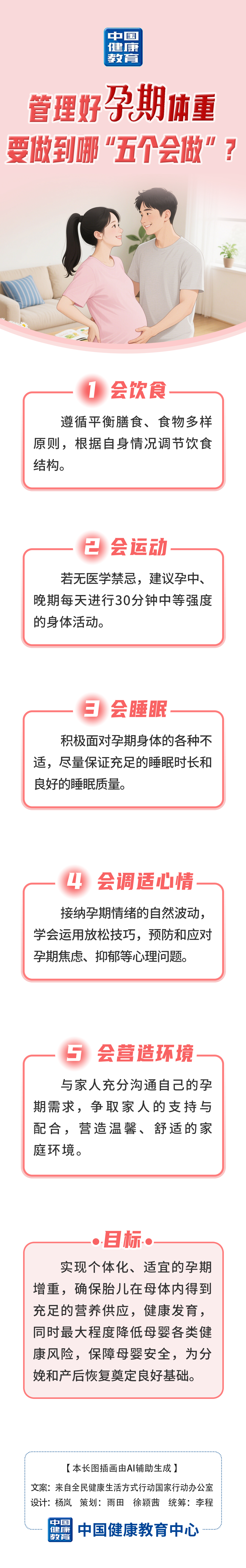 全民健康生活方式宣传月丨管理好孕期体重,要做到哪“五个会做”?